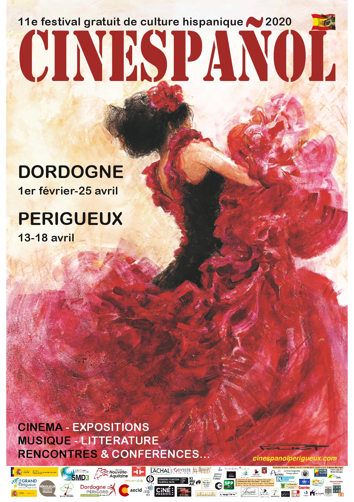 Cinespañol Périgueux est un festival gratuit de culture hispanique avec projections de films, expositions de peinture et de sculpture, rencontres littéraires avec des auteurs espagnols qui interviennent dans les collèges et les lycées, animations musicales et concerts, lectures bilingues de poésies espagnoles.